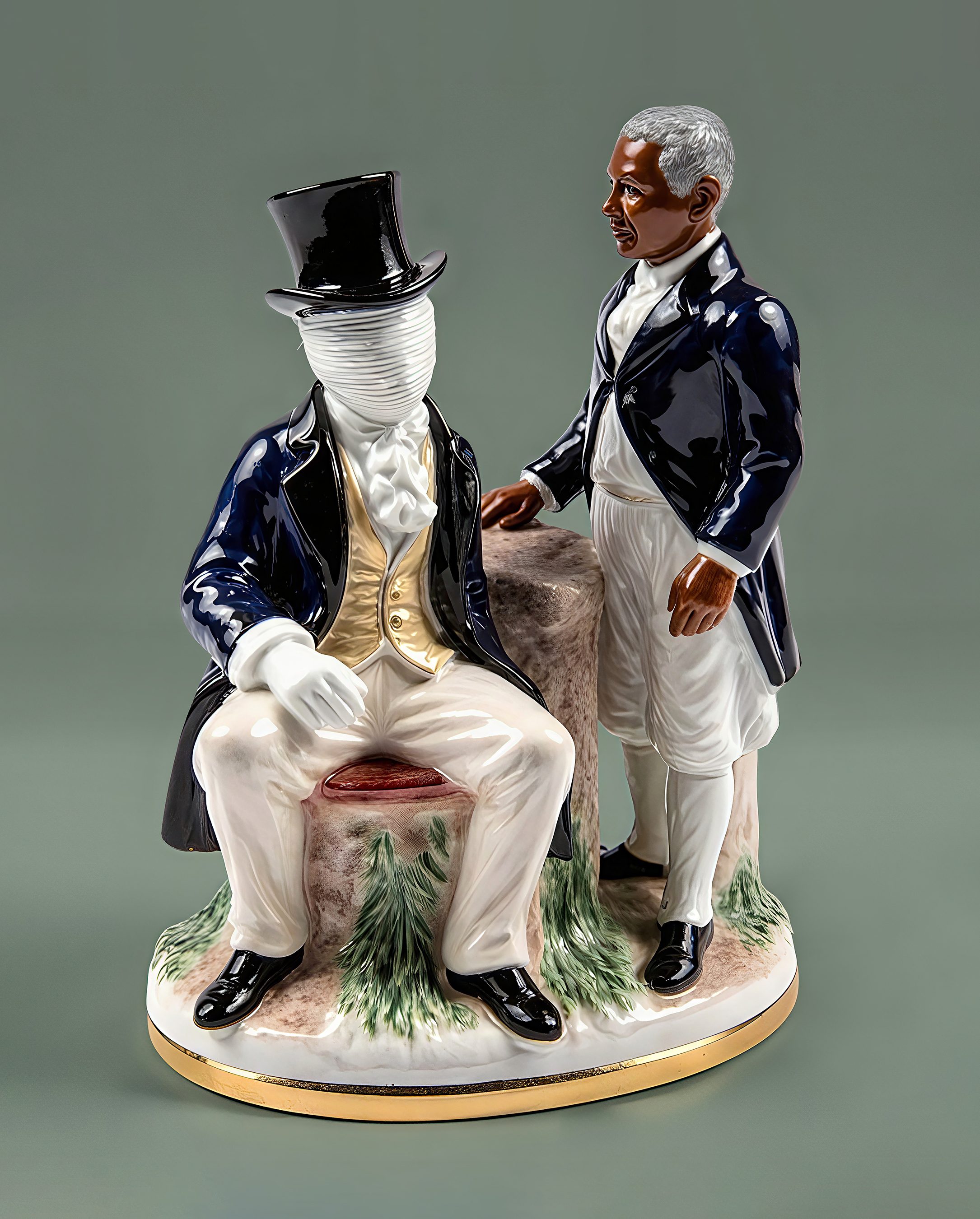In the case of museum artefacts, which are often perceived as a dependable store of accumulated factual evidence, there are times when ‘truth’ is called into question. The term ‘contested object’ is often used to describe an artefact that is now felt to be wrongly part of a museum’s collection. It may be that an argument has come to the fore that contests the ownership of the artefact or challenges the ‘truths’ that have generally been ascribed to it. Cultural artefacts and the portrayal of Others is another problematic area when it comes to pinning down facts. It might be said that, in the subject/object relationship that characterises the looker and the looked at, ideas of authenticity are often hazy and questionable. This work conjures up new ‘historic’ artefacts with the help of AI. Figurines and other object d'art with their origins in the past, for all their aesthetic charm, tell a particular story with regard to power relationships concerning social and cultural groups. In this work, the ‘truths’ told by objects of the past are playfully meddled with and new narratives of the past emerge.