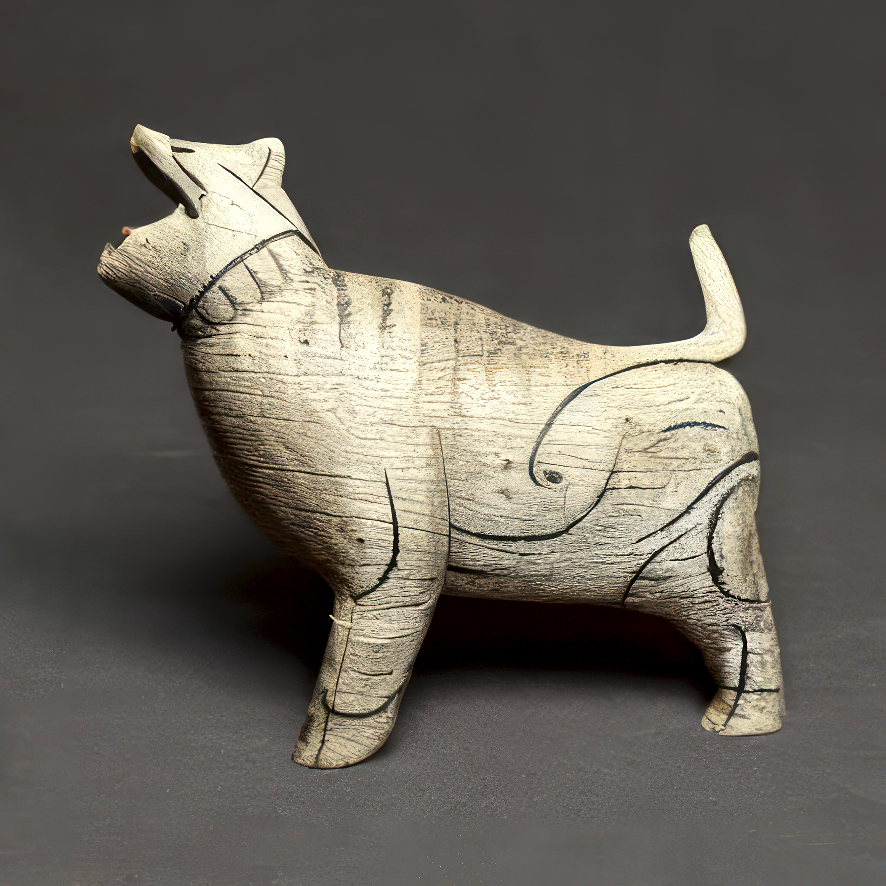 | | Folkless There is something absurd, almost comical, about using AI to create a series of folk objects. Perhaps this is because folk art and craft are closely entwined with the inherited traditions of a community, and nothing could be more diametrically opposite to this than the instantaneity and indifference of generative AI. It is amusing and bizarre to observe AI concocting a sense of raw authenticity. In a matter of seconds, the roughly hewn and stitched, the gauche and vernacular, are ‘sculpted’ in near perfect mimicry. There is something disturbing about this too. Folk practices hold an earthy integrity shaped by daily life. High art idealism or the purely conceptual have no value in this parallel creative world of unfettered figuration and heartfelt decorative flourish. And possibly for this reason, the algorithmic conjuring of images, indifferently faking folk artefacts, seems all the more sinister; suggesting perhaps that digital creative output has finally begun to usurp the purely human variety of art making. Folk culture, in particular, could well be seen as a last vestige of uniquely human activity in that it is organically formed through lineage, and has its feet in a now misty age of pre-modernity. We might think that, on the one hand, we ought not to fear the digital conjuring trick of AI, where our own cannibalised data is mirrored back to us as newly made material. But on the other, we might ask where is this leading, and what should we make of the slow erosion of creative thinking and practice that is driven by lived experience? | Totem