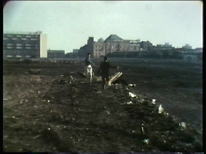 This 16mm film project draws inspiration from Daniel Dafoe’s Robinson Crusoe. Crusoe’s time on a desert island has prompted much reflection on the way in which the wilderness is tamed through the castaway’s ingenuity and his imposition of imported cultural practices. Unsurprisingly, Crusoe’s determination to make the wilderness more like home has been discussed extensively in relation to colonialism, with post-colonial readings unpicking the connections between Crusoe’s ideas of civilization and the justifications that were made in defence of colonial rule. Key to this discussion is Crusoe’s relationship with Friday, whom he teaches ‘civilizing’ ways and transforms into a dutiful slave. In the novel, the learning of language features as one aspect of Friday’s education but language can be viewed as the fundamental link with civilizing order if one perceived it as the antithesis of corporeality. In Home Comforts it is Crusoe who slowly absorbs the structure and lexicon of language. At the film’s beginning, Crusoe’s mind is ‘as clear as a freshly-wiped slate’, but as his memory returns it becomes the key to recognizing the extent of his predicament. Among his concerns is a sense of not being alone, of being in a territory where an Other is present - not so much as a threat of physical harm but as an ego ideal that begins to undermine his sense of his own achievements. The female voiceover, that against all odds asserts his ingenuity and prowess, raises the possibility that this virtual image of self is one that requires an external gaze to narrativize achievement and witness a mastery of space. Home Comforts was made in collaboration with performance artist Ian Sherman and was completed in 1993.