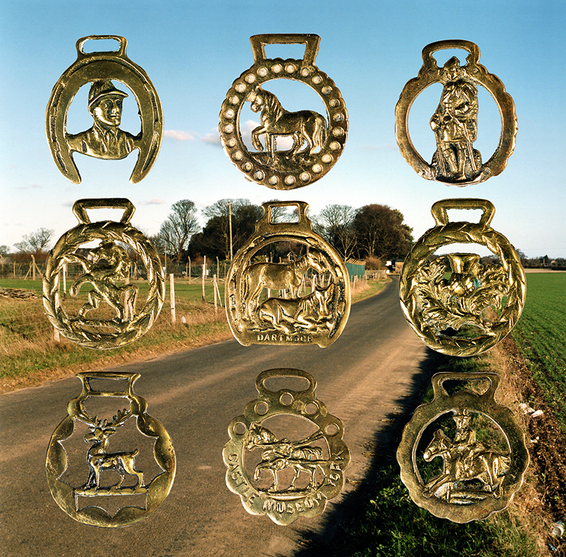 Roger Hopgood adds one realistic image to another to produce a visual puzzle. Whereas portraiture and news photographs are supposed to match expectations of ‘being there’, Hopgood’s pictures deny the normal ‘window’ function of the medium. Instead, small objects are made large and float in (or above) the landscape. These objects are either flat or occupy a very shallow space, whereas the landscapes are often deep, with horizons some way off. The eye is drawn to the landscape but the view is obstructed, often by brightly lit, kitsch or gimcrack objects. Why are they conjoined in this fashion? Are the two parts of the image just placed in some jocular or pointed opposition, such as a natural landscape with a cheap, transfer-printed plate of huntsmen and hounds? Clearly, the unsympathetic objects that hover in the foreground do indeed contrast with the views they obscure.
