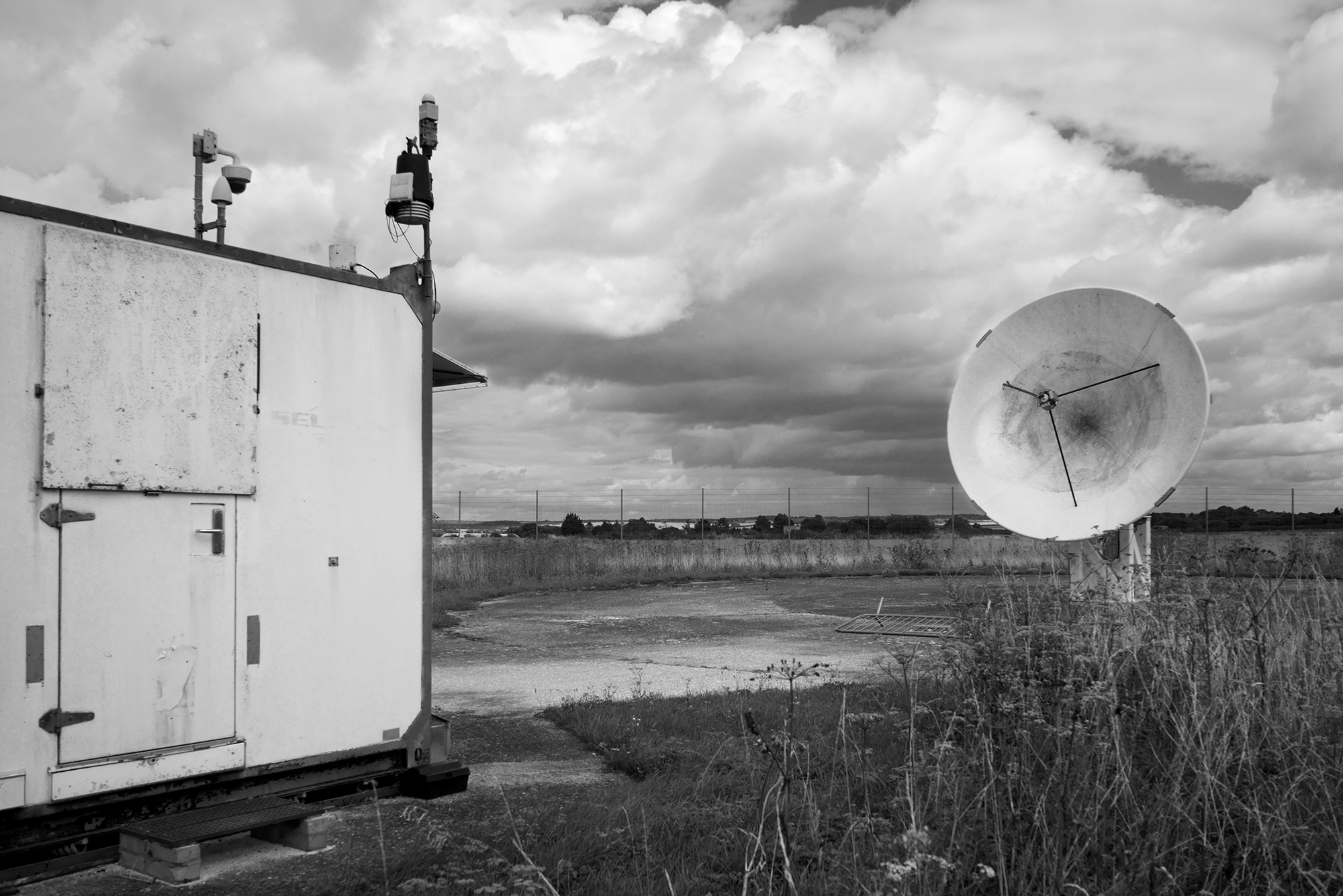 The structures in this series are associated with detection. The radars and telescopes in the work look out from their rural location. The notion of an escape to the countryside is always at odds with a desire to maintain some distance, to objectify and see the non-urban from a subjective vantage point. As landscapes, these images offer some resistance to this kind of mastery. On the one hand, they gaze out with authority to places beyond our human eye capability. On the other, they collapse into a trope of Picturesque charm. Technology is only disruptive of idealise ‘nature’ when its associations are with contemporary urban culture; and technology with a patina of age has the potential to be absorbed into the bucolic. Even in the case of the functioning radars and radio telescopes, in their countryside setting they begin to remind us of a certain sub-genre of British science fiction; and as such they too begin to invite a nostalgic desire for the past. In a way, these images represent a tussle between our desire to maintain our ocular advantage (and see the landscape in a way that serves our needs) and our preparedness to give ground and relinquish our Self-affirming vantage point.