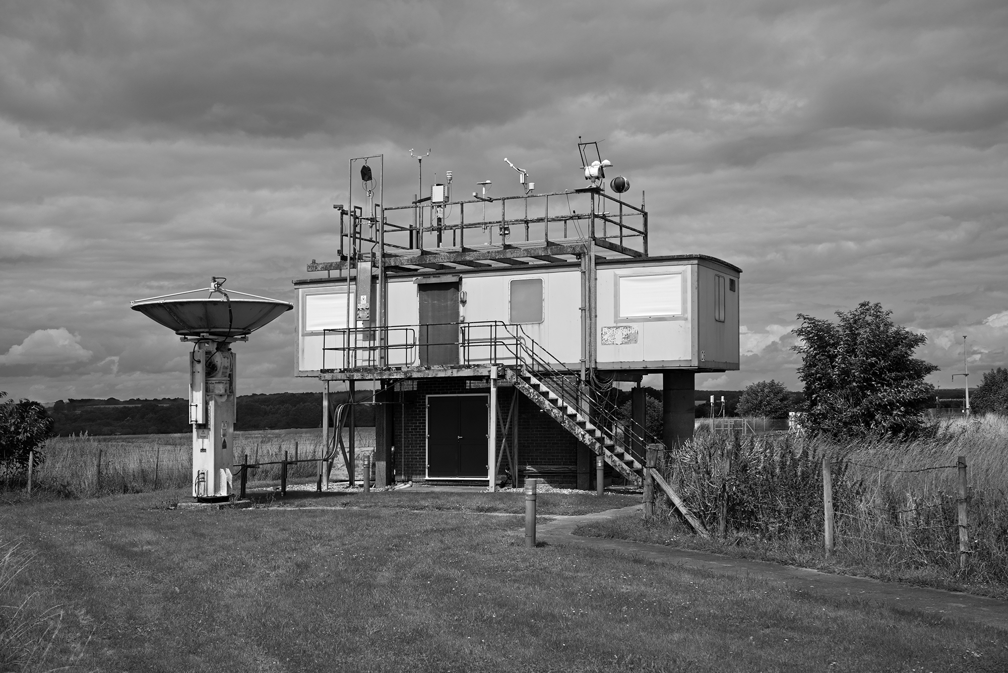 The structures in this series are associated with detection. The radars and telescopes in the work look out from their rural location. The notion of an escape to the countryside is always at odds with a desire to maintain some distance, to objectify and see the non-urban from a subjective vantage point. As landscapes, these images offer some resistance to this kind of mastery. On the one hand, they gaze out with authority to places beyond our human eye capability. On the other, they collapse into a trope of Picturesque charm. Technology is only disruptive of idealise ‘nature’ when its associations are with contemporary urban culture; and technology with a patina of age has the potential to be absorbed into the bucolic. Even in the case of the functioning radars and radio telescopes, in their countryside setting they begin to remind us of a certain sub-genre of British science fiction; and as such they too begin to invite a nostalgic desire for the past. In a way, these images represent a tussle between our desire to maintain our ocular advantage (and see the landscape in a way that serves our needs) and our preparedness to give ground and relinquish our Self-affirming vantage point.