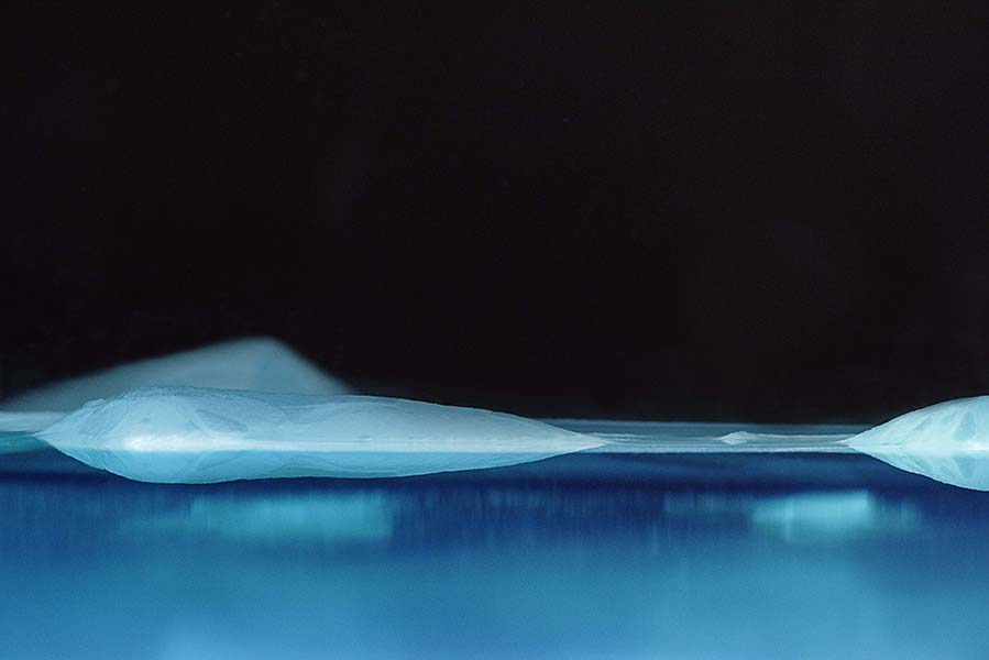 In an exhibition curated by Roger Hopgood, seven photographers are brought together whose work seeks to reveal something unknown or unseen. Photographic projects can often take the form of a quest of some kind, where the photographer aims to locate and make concrete something elusive, invisible or overlooked. In the work of each of these photographers, place and landscape are significant themes, with this often involving a journey to a specific location. In James Dobson’s Barrow series, ancient burial mounds are captured. These gently contoured hills are easily read as natural features of the landscape but once we become aware of the subject of Dobson’s series, we begin to feel an atmosphere within the work that speaks of endurance and the passing of time. David Gibson’s Lost Zone – Chernobyl series delivers the kind of dark charm that we associate with contemporary ruin. Places of work and recreation have been brought to a standstill and we ponder the presence of the invisible contaminant that has caused this. In the work of Stella Trench, the object of scrutiny is more local. In her series, she follows the course of a ‘forgotten’ canal in Kent. The Thames and Medway Canal was a failed project from its beginning, and after its closure in 1934 has descended into a state of ‘invisibility.’ For Raz Talhar, the subject of his work is unnoticeable in a different way. Talhar records the process of land reclamation in Malaysia. Although visible, both during its construction and after, the new land, once established, takes on the demeanour of having always been there; its presence is absorbed into the existing landscape. Karin Wach makes a different response to the place she is investigating. In trying to make sense of the transformation of Bankside Power Station into the Tate Modern, she builds collaged constructions that convey the idea of a driving force. This might refer to the machinery that was once housed here, or alternatively might refer to the mechanics of change and development. Roger Hopgood’s landscape work often features an uneasy relationship between ‘nature’ and technology. In 3G Hinterland, he travels through the Wye Valley searching for dead zones in the cell phone network. The Picturesque, from its inception, sought an escape from industry and development, and what is playfully pursued in this work is ‘nature’ in a more intact form. Nicole Talliss’ landscapes have not involved a physical journey. With the appearance of polar exploration, they are in fact small-scale constructions, which Talliss relates to Freud and the unconscious. What we see in the work resembles an iceberg, an object that has often been used to convey the significance and potency of that which lies beneath the surface.