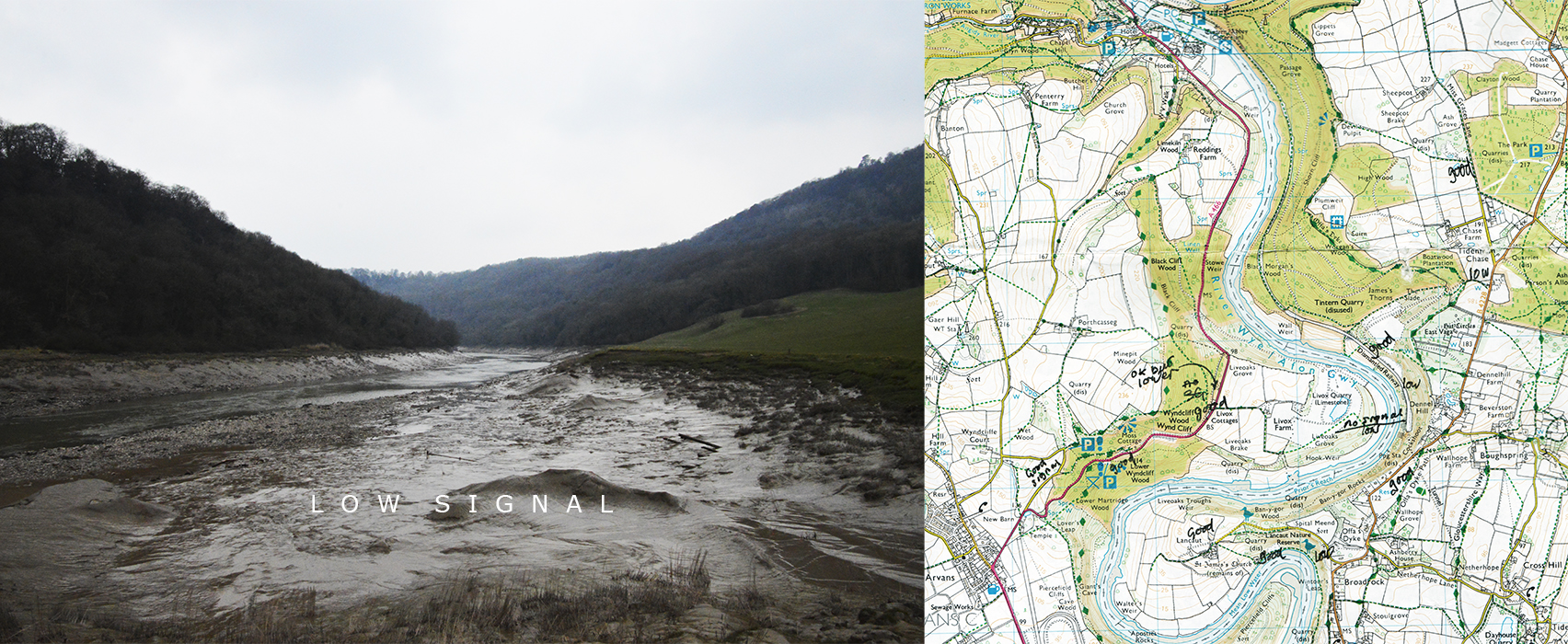 Today the Wye Valley has lost much of its Picturesque charm: a sense of industry is commonplace; Tintern Abbey has been shorn of its ivy; and nature, by and large, is kept neatly in its place. And yet in one respect a sense of wilderness remains. Here and there dead zones in the cell phone network indicate that the imposition of order is incomplete. South of Tintern Abbey, between Wyndcliff Wood and Dennel Hill, the signal is unreliable. Towards Monmouth, in the region of Whitebrook, there is a sizable dead zone where no signal can be accessed. These images are a survey of the Wye Valley dead zones.