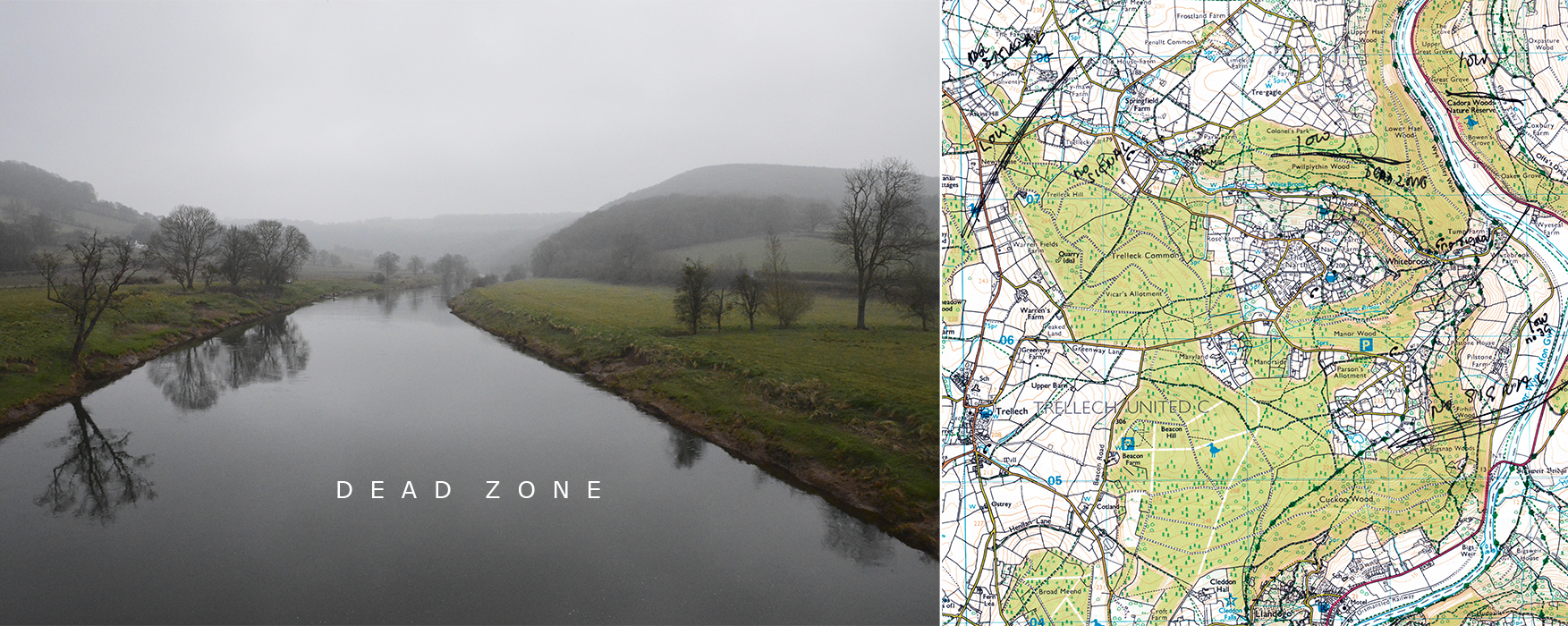Today the Wye Valley has lost much of its Picturesque charm: a sense of industry is commonplace; Tintern Abbey has been shorn of its ivy; and nature, by and large, is kept neatly in its place. And yet in one respect a sense of wilderness remains. Here and there dead zones in the cell phone network indicate that the imposition of order is incomplete. South of Tintern Abbey, between Wyndcliff Wood and Dennel Hill, the signal is unreliable. Towards Monmouth, in the region of Whitebrook, there is a sizable dead zone where no signal can be accessed. These images are a survey of the Wye Valley dead zones.